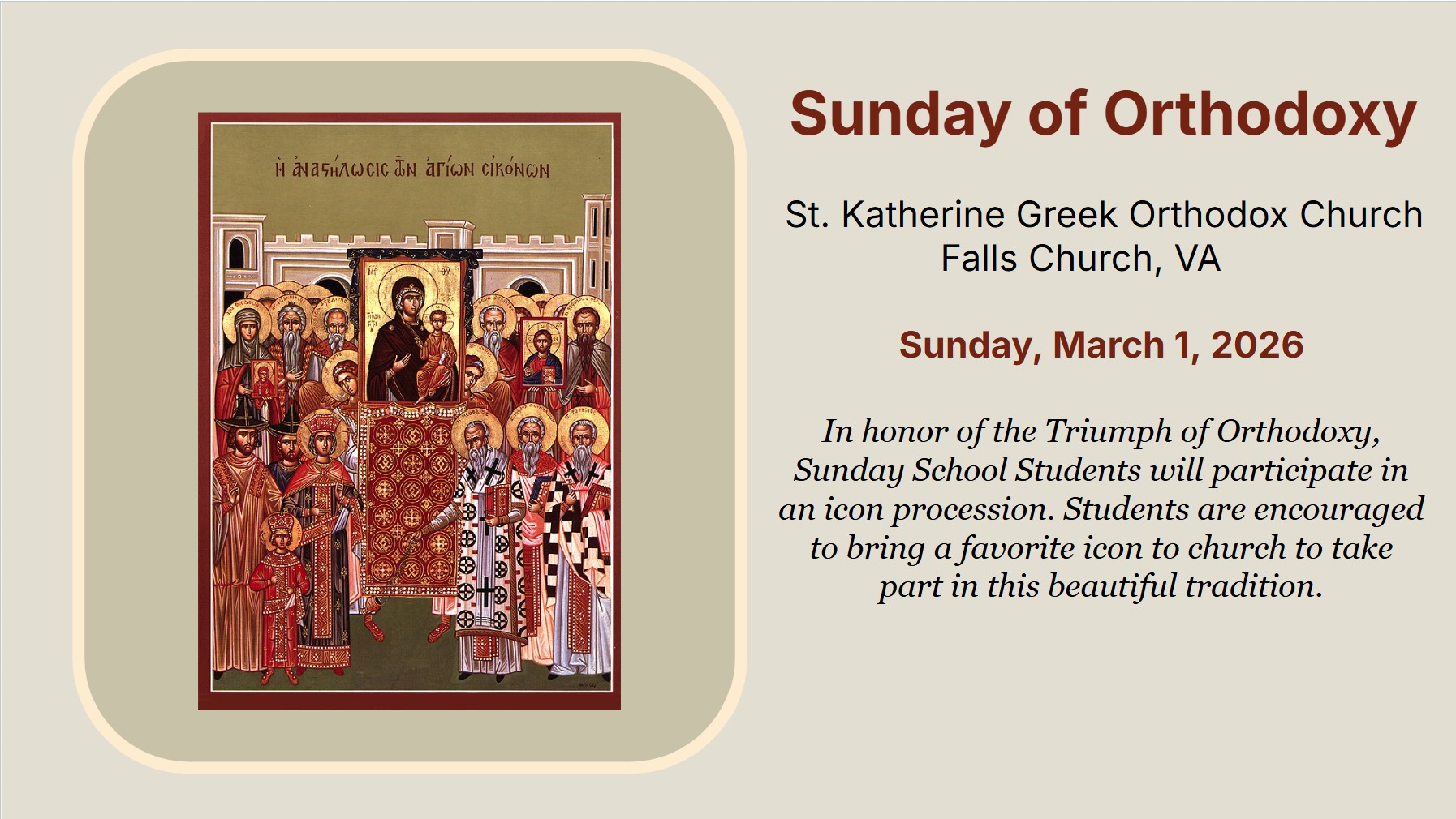 Welcome to Saint Katherine Greek Orthodox Church in Falls Church, Virginia, just 6.75 miles from Washington, DC. Saint Katherine has been ministering to Orthodox Christians in Northern Virginia for over 50 years. Please come to church and worship with us. We have lots to offer and would love to have you join our church family.